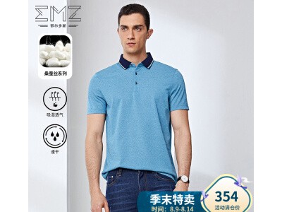 鄂尔多斯EMZ 春夏透气快干POLO衫 男士短袖翻领易打理T恤含桑蚕丝 浅绿 52