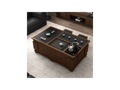 鹰花简约现代岩板功夫茶几中式泡茶桌客厅接待洽谈商务茶艺桌茶桌椅组合茶台桌椅套装一体办公室家用泡茶茶台 胡桃色茶几 茶几120*65*56cm
